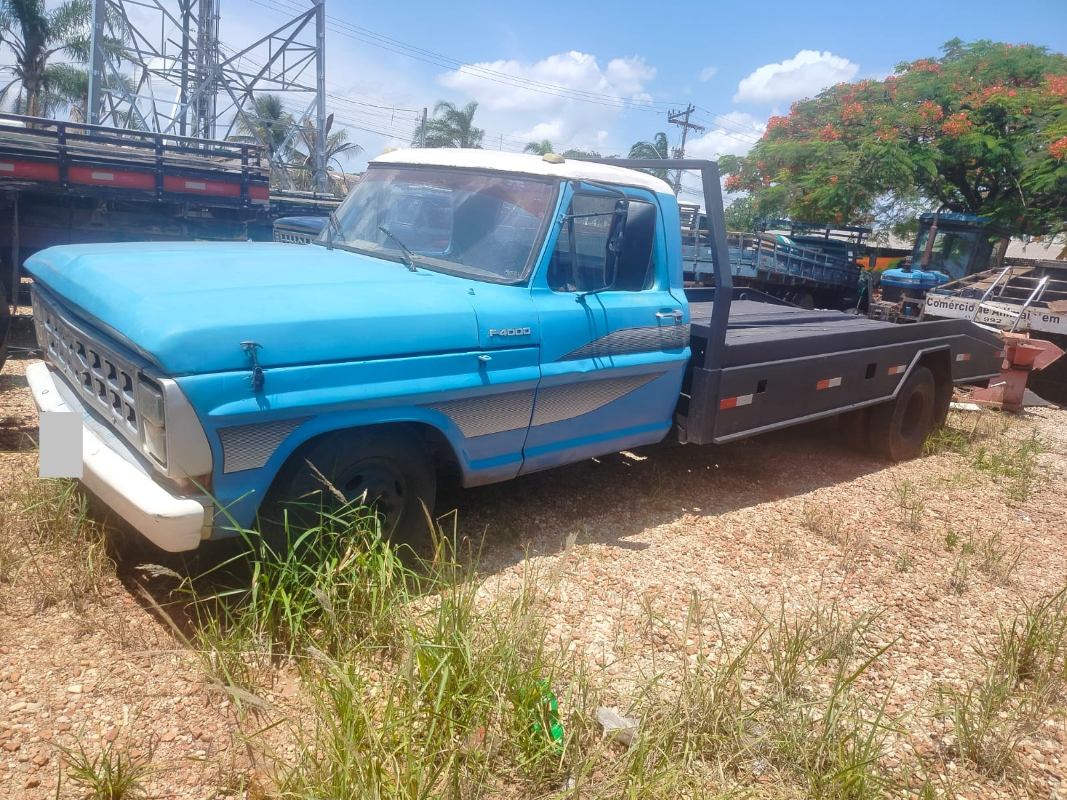 CAMINHÃO FORD/F4000; ANO 1977/1977; COR AZUL; COMB. DIESEL; C/ PRANCHA