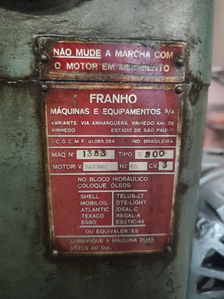 LOTE ÚNICO; MAIS DESPESAS DE R$ 162,50; MECÂNICA SEM TESTE - SERÁ VENDIDO NO ESTADO EM QUE SE ENCONTRA - RETIRADA/CARREGAMENTO POR CONTA DO COMPRADOR - COMITENTE: SÓ METAL COM. MÁQS. - VISITE O LOTE, NÃO SERÁ ACEITO RECLAMAÇÕES POSTERIORES - VISITAÇÃO: SERÁ PERMITIDO MEDIANTE CADASTRO APROVADO E AGENDAMENTO PRÉVIO (24HS.) PELO WHATTSAPP 11 94720-0619, NÃO SERA PERMITIDO A ENTRADA NO PATIO, SEM CADASTRO E SEM AGENDAMENTO, FAVOR NÃO INSISTIR. O VALOR INICIAL DE CADA LOTE NÃO CORRESPONDE AO VALOR DE VENDA - PGTO. SOMENTE A VISTA. LOCALIZAÇÃO PARA RETIRADA EM SÃO PAULO/SP.