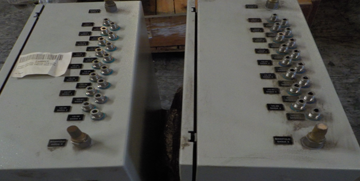 2 CONJUNTO DE VÁLVULAS UTILIZADAS COMO MODO DE CONTROLAR O FLUXO HIDRAULICO OU PNEUMATICO NO EQUIPAMENTO PAINEL CONTROL PNEUM SILO QUEN - TAMANHO 265X570X600; CB18 - (CÓD. 2400001) - LOC. PORTO ALEGRE/RS