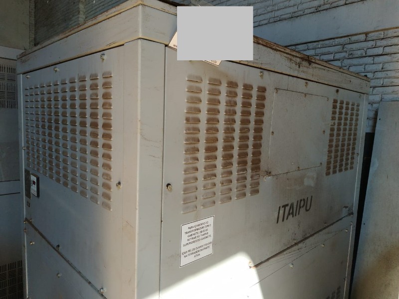 1 Transformador à seco Itaipu 500kVA 690V para 380V patrim 216656 (loc Depósito de motores) - 1 Transformador à seco WEG 2x1.000 kVA 12kV para 690V patrim 172169 (loc CCM Caldeira 4)
