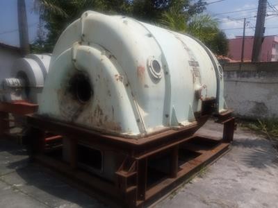01 TURBINA, POTÊNCIA 12.000KW, ROTAÇÃO 3.600RPM, TIPO CONDENSAÇÃO, COM GERADOR GEN TIPO WT652B, SÉRIE B63392, 13200V, 655A, 15.000KVA, 3600/M, 60HZ (DESMONTADO) Equipamento podendo haver falta de peças e componentes, ou mesmo necessitar de reparos. Será vendido no estado em que se encontra, visite o lote não será aceito reclamações posteriores - loc: Ribeirão Pires/SP