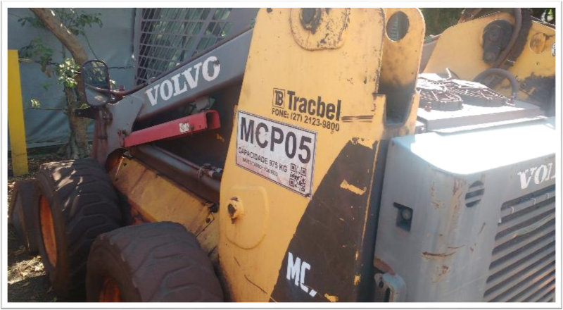 SERA VENDIDO NO ESTADO EM QUE SE EOCONTRA-LOC. VITORIA/ES -082-1462-2019 - Mini-Carregadeira - Volvo - MC90B - Ano: 2011 - Serial / Chassi: N/S 71134 - Renavam: N/A - Placa: N/A - TAG/CP: MCP05 - KMs / Hrs trabalhadas: 2.495,60 - Condição: Desativado - Imobilizado: 1000080576 - 8000012430 - Motor: SIM - Transmissão: NÃO - Caçamba(pá)/lâmina: NÃO - Carregamento e transporte fica sob responsabiliade do cliente, será necessário um caminhão de carroceria com acessório de guindar para retirada do equipamento. O equipamento está ausente de fuidos e precisa de manutenção mecânica, elétrica e estrutural. - Será vendido no estado de conservação em que se encontra. - Este equipamento, devido suas dimensões, exigirá desmontagem parcial/total para proporcionar o seu transporte/retirada. Para trabalhos em altura superior a 1,80 mts faz-se necessário a utilização de escada plataforma e/ou plataforma elevatória. Para içamento das cargas, deverá ser utilizado equipamento de guindar com capacidade compatível com o peso da peça. Para peças com peso superior a 10 t será necessário plano de rigg. Para movimentação de peças deverá ser utilizado caminhão munck ou empilhadeira com capacidade compatível com o peso destes itens. Deverá ser observado o cumprimento a legislação aplicável e atendimento aos requisitos legais.