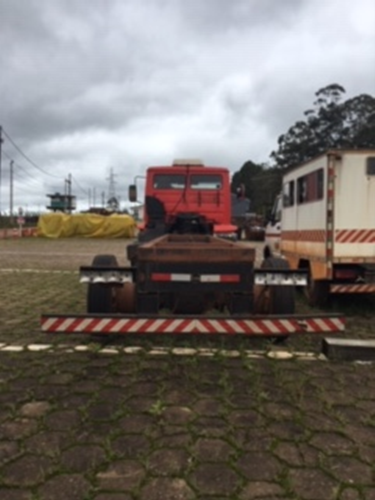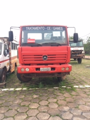 Condições operacionais atuais: deficiente Necessita de reparo: Reparo geral no motor, bomba de injeção, transmissão, interiores da cabine, suspensão e sistema de frenagem. SISTEMAS – GRUPOS Motor: Regular Motor de combustão: Com defeito Radiador: Bom Mangueira: Regular Cabine: Muito desgastado Ar condicionado: Não Aplicável Banco: Regular, capa assento do banco danificada Painel: Com defeito, falta topógrafo, medidor de combustível e acabamento Portas: Com defeito, forro de portas desmontado. Retrovisores: Regular Vedação: Muito desgastado Vidros: Regular Alavanca troca de marchas: com defeitos, manopla da alavanca danificada. Luzes indicadores: com defeitos Chave reserva: Faltando Tambor de ignição: Bom Alavanca de seta/limpador: Bom Interruptores de acionamento: com defeitos Sistema de ventilação: com defeito Sistema de aquecimento: Não aplicável Estrutura: Muito desgastado Chassi: Regular Lataria: Regular Reservatório de combustível: faltando Escadas: Regular Para-Choques: Muito desgastados Sistema de direção: Muito desgastado Coluna de direção: Faltando Barras e terminais: Muito desgastados Volante: Regular Bomba de direção: regular Setor de direção: regular Sistema de Suspensão: regular Barras estab. Dianteira: regular Barras estab. Traseira: Não Aplicável Molas: regular Amortecedores: com defeito Balanças: Regular Sistema de Freios: Muito desgastado Cuicas traseiras: regular Cuicas dianteiras: com defeito, falta uma cuica dianteira lado direito. Sistema pneumático: muito desgastado Tambores de Freio: Regular Sistema de Trem de Força: regular Caixa de mudança: Não aplicável Caixa de transferência: regular Embreagem: regular Cardans: regular Cubos de Roda: bom Diferencial: bom Sistema elétrico: Muito desgastado Motor de partida: faltando Bateria: com defeito Limpador de para-brisa: regular Módulos eletrônicos: Não Aplicável Buzina: Regular Alerta de ré ( Sirene ): Faltando Alternador: Regular Fiação e Chicotes: Regular Instrumentos: Muito desgastado Sistema de Locomoção: Muito desgastados Pneus/Rodas: Muito desgastado, falta um pneu no ultimo eixo lado esquerdo e um pneu no ultimo eixo lado direito. Eixo dianteiro: Regular Eixo traseiro: Regular Estepe: Faltando Sistema de Segurança: Faltando Cinto de segurança: Muito desgastado Extintor de incêndio: Faltando Triângulo: Faltando Macaco: Faltando Chave de rodas: Faltando Air Bag: Não Aplicável Sistema de iluminação: Muito desgastado Estado geral: Muito desgastado Iluminação lateral: Muito desgastado Farol Dianteiro: Muito desgastado Farol Traseiro: Faltando Outros acessórios: Não Aplicável Implementos: Báscula: Não Aplicável Baú: Não Aplicável Tanque de água: Não Aplicável Guindauto: Não Aplicável Tanque hidráulico: Não Aplicável Cilindro hidráulico: Não Aplicável Sistema Hidráulico: Não Aplicável