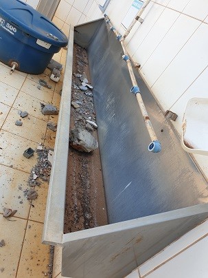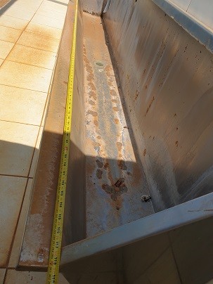 1 Cuba de Bebedouro Inox (Medida 1,5m) - 3 Lavatórios Inox (Medida: 5,53m) - 6 Mictórios Inox (Medida: 3m) - LOTE ÚNICO - SERÁ VENDIDO NO ESTADO EM QUE SE ENCONTRA - SEM TESTE - RETIRADA/CARREGAMENTO POR CONTA DO COMPRADO - VERIFIQUE CONDIÇÕES DE RETIRADA -VISITE O LOTE NÃO SERÁ ACEITA RECLAMAÇÕES POSTERIORES - ENDEREÇO Rodovia GO 406 - Fazenda Santo Antonio do Rio Doce - Jataí - Goiás