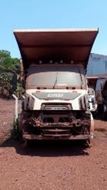 MCR-224-2019 - CAMINHÃO BASCULANTE 10X6 HD5395TS - GINAF, PARADO A 2 ANOS. MOTOR DIESEL - CUMMINS QSX15 TIER 3 HPI; CAIXA DE CAMBIO - ZF 12AS3141TO. BANCOS SUJOS. PAINEL PARCEALMENTE DESMONTADO, ESTÁ FALTANDO RELÉS E FUSÍVEIS. GRADE FRONTAL COM TRINCAS. BATERIA SEM CARGA. ESTA FALTANDO ALGUNS CHICOTES DO SISTEMA ELÉTRICO. ESTA FALTANDO MÓDULOS E CENTRAIS ELETRÔNICAS. AS GRADE FRONTAL E OS FARÓIS NÃO ESTÃO INSTALADOS. LANTERNAS TRASEIRAS QUEBRADAS. NÃO ESTA BASCULANDO A CABINE. ESTA FALTANDO ALGUMAS MANGUEIRAS, NO SISTEMA HIDRÁULICO. MOTOR DIESEL AVARIADO. ESTA FALTANDO OS CARDANS. POSSUEM TODOS OS PNEUS E AS RODAS. NÃO ESTA BASCULANDO A CAÇAMBA. POSSUE BÁSCULA MAS NÃO SE ENCONTRA INSTALADO NO CAMINHÃO. - SERÁ VENDIDOS NO ESTADO EM QUE SE ENCONTRAM - LOC.: - CORUMBÁ/MS