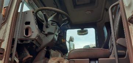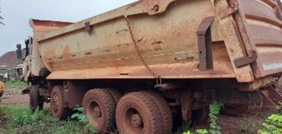CAMINHÃO SEM PRIMEIRO EMPLACAMENTO; SEM DIREITO A DOCUMENTAÇÃO - SERA VENDIDO NO ESTADO EM QUE SE ENCONTRA- LOC. Corumbá/MS - Cabine com defeitos, ar condicionado inoperante, painel parcialmente desmontado com ausência de fusíveis, reles e unidades eletrônicas. Estrutrua externa com defeito,com ausência de grade frontal inferior. Sistema elétrico com ausêcia de bateria , ausência de alguns chicotes elétricos, ausência de instrumentos e motores elétricos e de partida. Sistema de iluminação com defeito e com ausência do farol do lado esquerdo. Sistema hidráulico com defeito, não esta basculando a cabine. Sistema de refrigeração ausente (falta de radiador e mangueiras). Trem de força ausente: motor diesel ausente. Ausência da caixa de cambio, ausência do eixo diferencial do 3º eixo. Pneus e rodas: ausente 5º, LE/LD. Implemento com caçamba danificada, sistema de elevação inoperante.