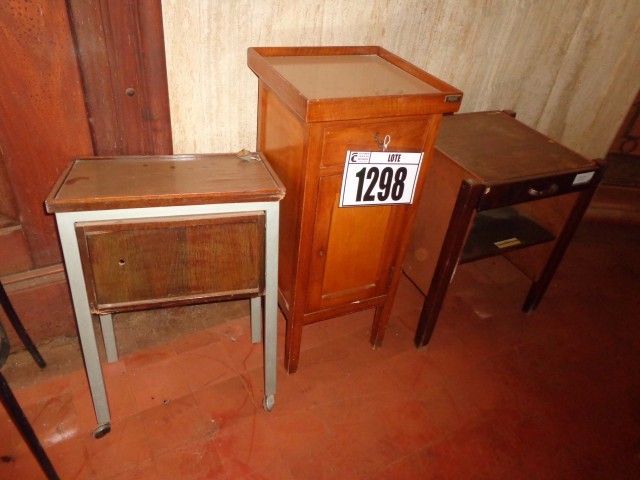 MÓVEL DE MADEIRA (CANTONEIRA) E 3 MESAS DE MADEIRAS (MESA ALTA NÃO INCLUSA), SERÁ VENDIDO NO ESTADO EM QUE SE ENCONTRA, RETIRADA/DESMONTAGEM/CARREGAMENTO/ POR CONTA DO COMPRADOR - VISITE O LOTE - NÃO SERÁ ACEITO RECLAMAÇÕES POSTERIORES.