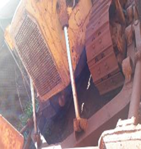 Cabine com defeitos, ar condicionado não aplicável, banco quebrado, ausência de limpador de para-brisa. ausência de retrovisores. Instrumentos avariados. Vidros quebrados. painel parcialmente desmontado com ausência de fusíveis, reles e unidades eletrônicas. Estrutrua externa com defeito, com tanque de combustivel internamente sujo. Sistema elétrico com ausêcia de bateria , ausência de alguns chicotes elétricos, com motor de partida e elétricos com defeito. Sistema de iluminação com defeito, com farol dianteiro ausente e faroletes traseiros ausente. . Sistema hidráulico com defeito. Sistema de refrigeração com defeito. Trem de força ausente: o trator esta com o trem de força, motor e transmissão, diferencial, porem estão todos com horímetros vencidos O trator esta com as duas esteiras. Implemento com a lamina avariada. O trator esta com 8 anos parados, sistema de injeção danificado. Todos os sistemas estao com funcionamento comprometido. SERA VENDIDO NO ESTADO EM QUE SE ENCONTRA - LOC. Corumbá/MS MOTOR:SIM TRANSMISSÃO:SIM