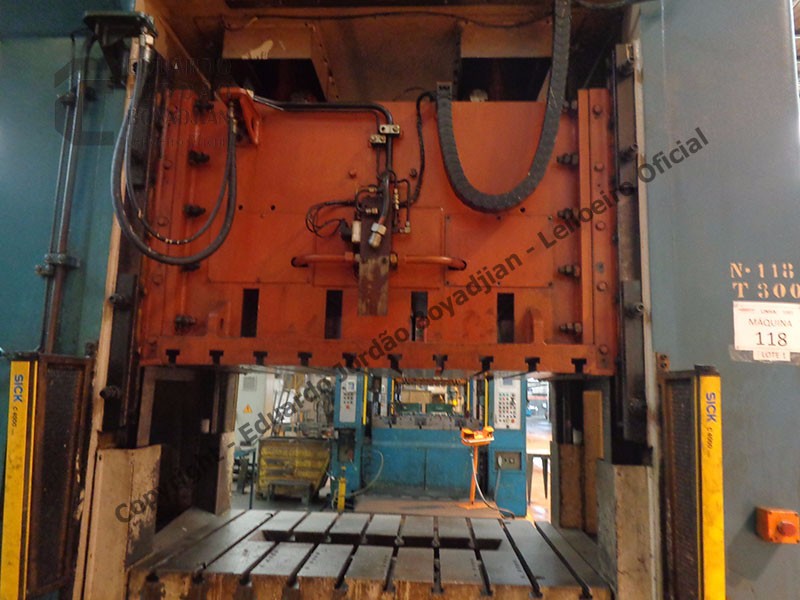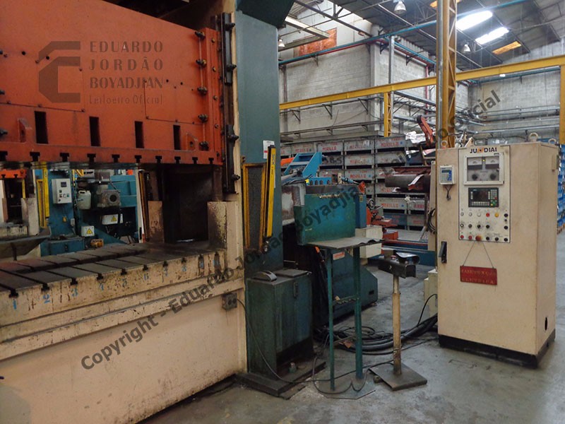CAP. 300 TON., DIMENSÕES DA MESA COMP. X LARG. 1500 X 1000; COM DESBOBINADOR, CALANDRA E ALIMENTADOR - SERÁ VENDIDO NO ESTADO EM QUE SE ENCONTRA - LOC.:GUARULHOS/SP