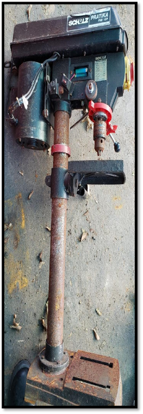 Carregamento e transporte fica sob responsabilidade do cliente, será necessário um veiculo de carroceria para retirar o equipamento. A furadeira de bancada com potência de 500W, necessita de manutenção mecânica, elétrica e estrutural. O mesmo está em Conselheiro Pena / MG. SERÁ VENDIDO NO ESTADO DE CONSERVAÇÃO EM QUE SE ENCONTRA - LOC: Conselheiro Pena / MG