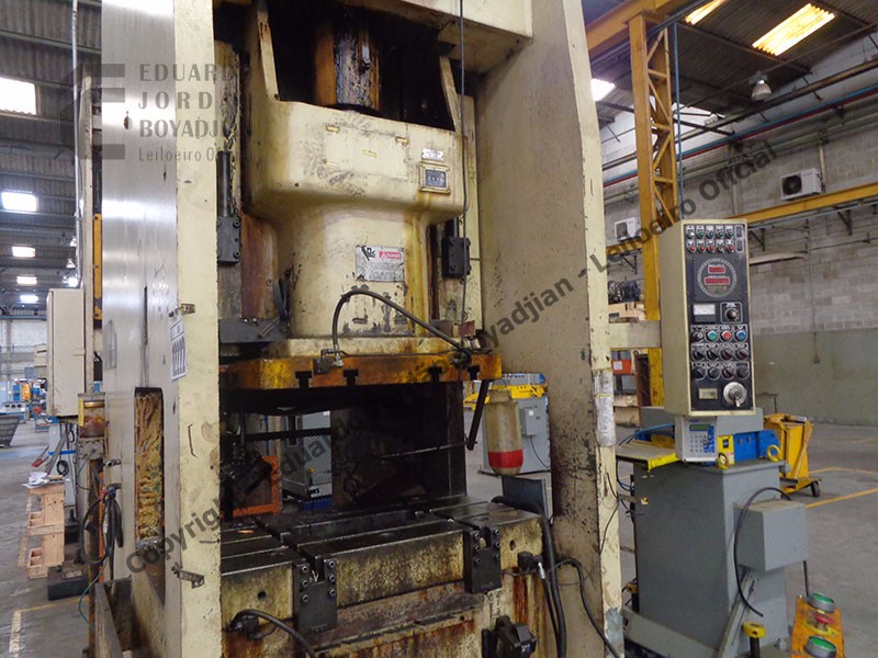 EXCENTR. TIPO H-200T AUTOMATICO, CAP. 200 TON., DIMENSÕES DA MESA COMP. X LARG. 1150 X 650, EM FUNCIONAMENTO, COM ALIMENTADOR - SERÁ VENDIDO NO ESTADO EM QUE SE ENCONTRA - LOC.: GUARULHOS/SP
