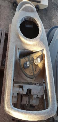 Lavadora de piso conduzida Gansow CT40. Lavadora não está funcionando, faltam peças, falta tampa do tanque, painel danificado, ausência de mangueira de dreno, ausência de escova, ausência de rodo. SERÁ VENDIDO NO ESTADO DE CONSERVAÇÃO EM QUE SE ENCONTRA - LOC: Açailândia-MA
