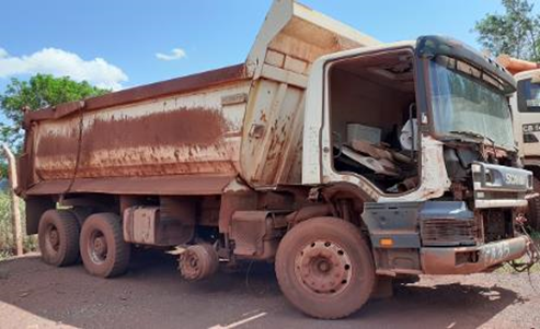 Cabine com defeitos, ar condicionado ausente, bancos ausentes. Portas e retrovisores ausentes. limpador de para-brisa com defeito. Vidros com defeito. painel com defeito e com ausência de fusíveis, reles e unidades eletrônicas. Ausência de instrumentos. Estrutrua externa com defeito, ausência de grades. Sistema elétrico ausente, com ausêcia de bateria , ausência de chicotes elétricos, ausência de instrumentos. com motor de partida com defeito e elétricos ausente. Sistema de iluminação ausente. Sistema hidráulico ausente, não esta basculando a cabine. Sistema de refrigeração ausente. Trem de força com defeito: motor diesel parcialmente desmontado, caixa de câmbio com defeito e no lugar. Diferencial do 3ºeixo com defeito e no lugar, diferencial do 4º eixo no lugar com defeito. Sem pneus e rodas: 1º eixo LE ; 2º eixo Le e LD; Int. 3º eixo LE e LD, Int 4º eixo LE. Estado do implemento esta com defeito. Caçamba danificada. O CB esta parada a 11 anos. Modelo da caixa de cambio - GRSO900R. Motor Diesel DSC 12 01 L01 400HP.- SERA VENDIDO NO ESTADO EM QUE SE ENCONTRA - LOC. CORUMBA/ MS MOTOR:SIM TRANSMISSÃO:SIM