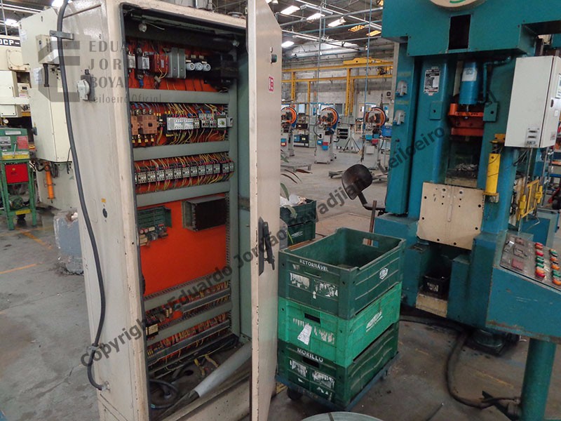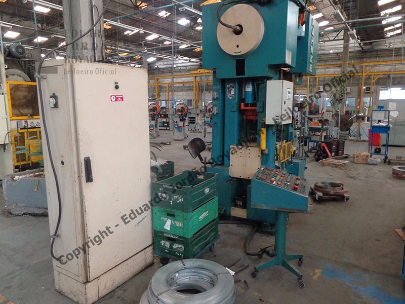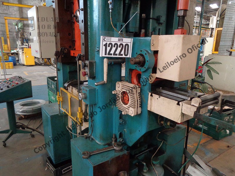 TIPO H-40T, CAP. 40 TON., DIMENSÕES DA MESA COMP. X LARG. 550 X 590, EM FUNCIONAMENTO, COM ALIMENTADOR E DESBOBINADOR - SERÁ VENDIDO NO ESTADO EM QUE SE ENCONTRA - LOC.: GUARULHOS/SP