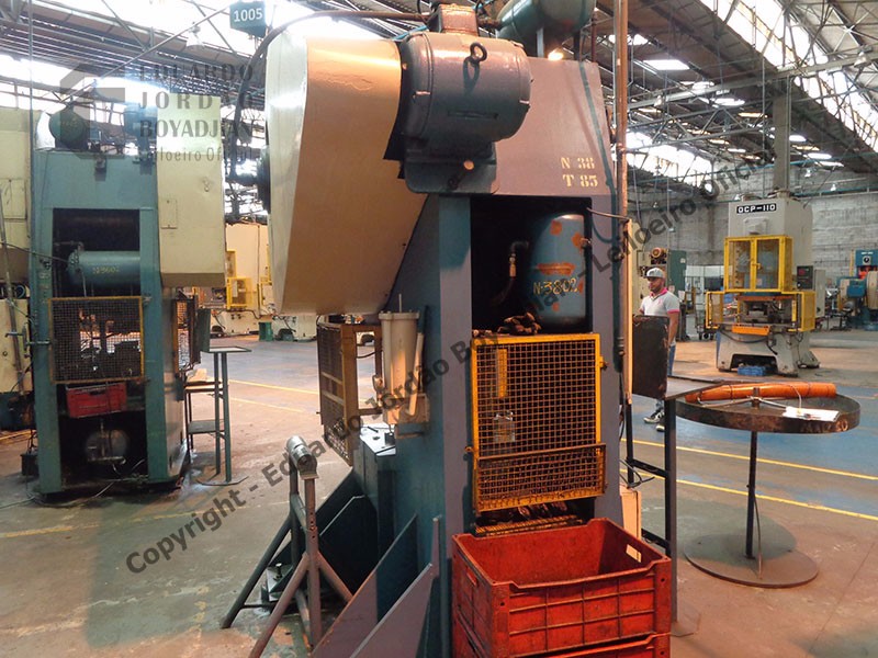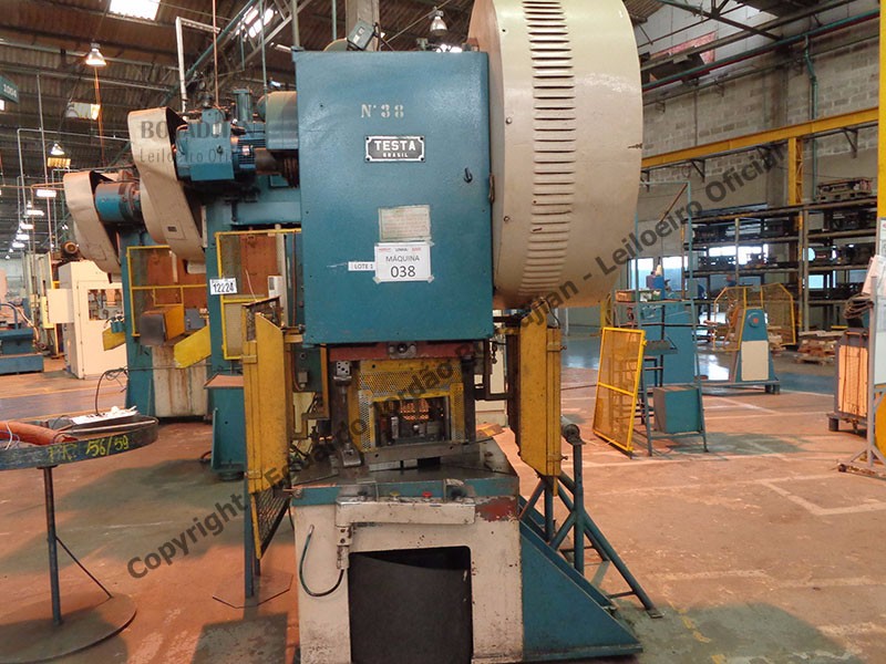 TIPO C-85T, CAP. 85 TON., DIMENSÕES DA MESA COMP. X LARG. 900 X 740, EM FUNCIONAMENTO, COM DESBOBINADOR E CALANDRA - SERÁ VENDIDO NO ESTADO EM QUE SE ENCONTRA - LOC.: GUARULHOS/SP