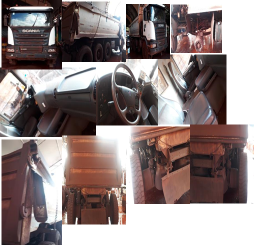 SEM DIREITO A DOCUMENTAÇÃO - Cabine com ar condicionado com defeito, bancos com forro rasgado, ausência de fusíveis, relés e unidades eletrônicas . Ausência de fechadura, maçaneta e forros. Estrutura externa muito desgastado. Vidro traseiro da cabine muito desgastado . Tanque de combustível muito desgastado. Sistema elétrico com bateria sem carga. Motor de partida com defeito. , ausência de chicotes elétricos, painéis muito desgastado. Sistema de iluminação com defeito e com ausência lanternas traseiras. Ausência de farol dianteiro. Sistema hidráulico com defeito, não esta basculando a cabine. Transmissão regular. Sistema de refrigeração com muito defeito. Trem de força com defeito: motor diesel no lugar, muito desgastado. Caixa de cambio no lugar muito desgastado. Embreagem danificada. Diferencial do 3º eixo no lugar. Diferencial do 4ºeixo no lugar. Pneus e rodas: ausente 2º eixo LE/LD ; sem pneus interno 3º, 4º e 5º eixos LD, LE. CB esta sem rodas: 2º eixo LE, LD; sem rodas internas 3º, 4º e 5º eixos LD, LE. Implemento com báscula danificada, ausência de cilindro, sistema de elevação com defeito. Motor Diesel - DC 13111 - 480 HP mod. caixa de câmbio - GRSO 925R. Localização: Corumbá/ MS