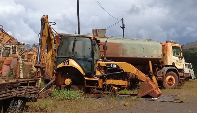 Cabine em geral muito suja, muita poeira, componentes cheio de mofos, Vedações das portas ressecadas, Vidros sujos sem trinca, pendencia de substituição de um vidro faltante onde está acrilico no local. Banco, sujos com muito mofo, aparentemente funcionado as regulagens. Necessidade de Higienização da cabine. Suporte da escada LD amassada. Faltando baterias. Fiação cortadas do alternador quando o mesmo foi removido. Painel de instrumentos está solto na cabine mas aparentemente os instrumentos estão integros; não existe condições para funcionar o equipamento. Seta traseira lado esquerdo quebrada e farol traseiro lado esquerdo faltando. Sem caçamba do "escorpião" de escavação. Equipamento não possui pneus. SERÁ VENDIDO NO ESTADO DE CONSERVAÇÃO EM QUE SE ENCONTRA. LOCALIZAÇÃO: OURO PRETO/MG