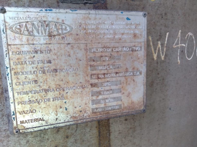 TANQUE DE ACO INOX FILTRO DE CARVAO ATIVO, INVENTÁRIO: 161207 TANQUE DE ACO INOX FILTRO DE CARVAO ATIVO ANO 1999, INVENTÁRIO: 161206 TANQUE DE ACO INOX FILTRO DE CARVAO ATIVO, INVENTÁRIO: 161206 OBS: EQUIPAMENTOS ENCONTRAM-SE INSTALADOS NO LOCAL. DESMONTAGEM, EQUIPAMENTOS E QUALQUER PROCEDIMENTO DE RETIRADA FICA POR RESPONSABILIDADE DO COMPRADOR, SEMPRE SEGUINDO OS PROCEDIMENTOS DA RAÍZEN. LOTE ÚNICO - SERÁ VENDIDO NO ESTADO EM QUE SE ENCONTRA - SEM TESTE - RETIRADA/CARREGAMENTO POR CONTA DO COMPRADOR - VERIFIQUE CONDIÇÕES DE RETIRADA - Endereço Fazenda Nova América S/N - CEP: 19.820-000 - Tarumã/SP