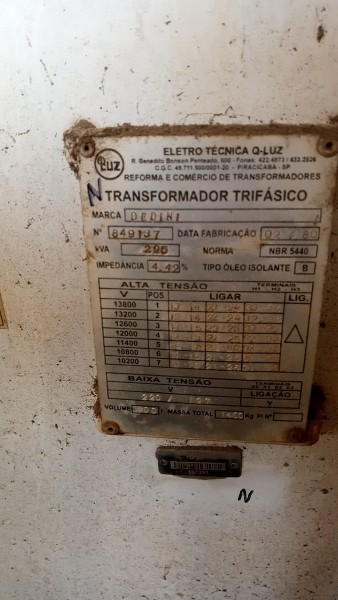 TRANSFORMADOR DE TENSAO A OLEO POT 150 KVA Q-LUZ, PATR. 187351, LOC. COSTA PINTO