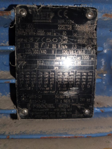 MOTOR ELÉTRICO WAQ DE 37HP; 50CV RPM 3550RPM VOLT 220 380 440