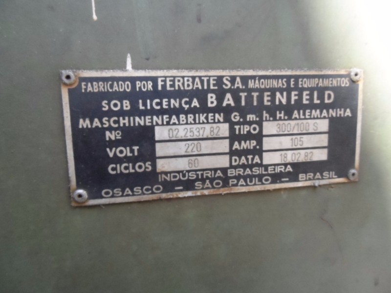 OBS: FABRICADA PELA FERBATE S.A SOBRE LICENÇA ALEMÃ DA BATTENFELD
