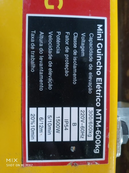 TALHA GUINCHO ELÉTRICO SEMI-NOVO CAPACIDADE 300 A 600KG ELEVAÇÃO 12M/6M