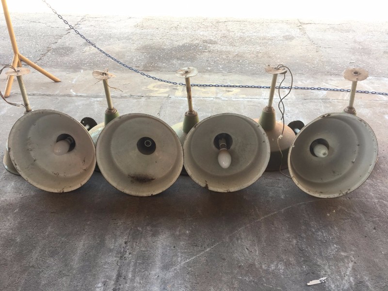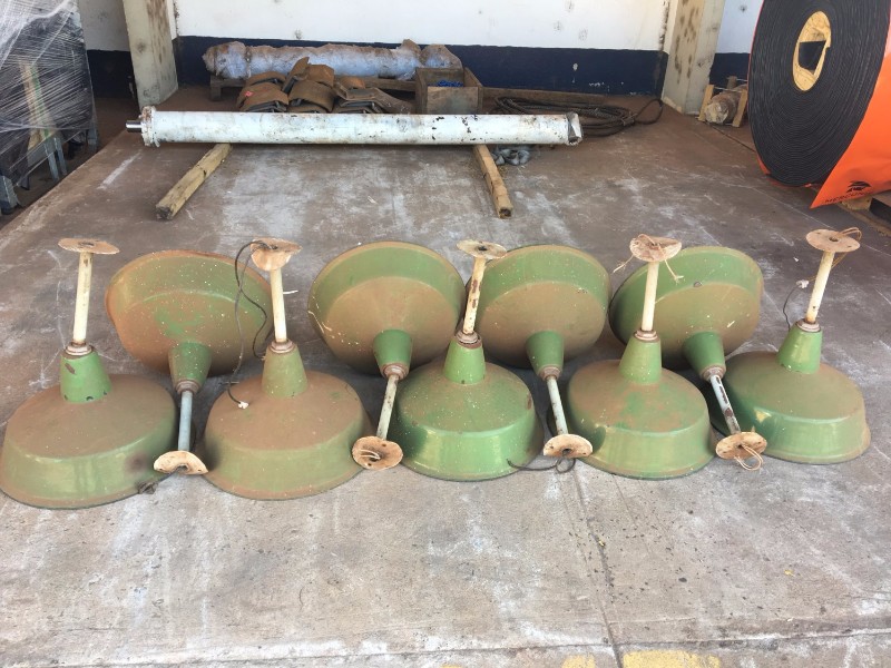 LUMINÁRIAS DE TETO Quantidade: 9 peças, apresenta pontos de ferrugens e amassados.