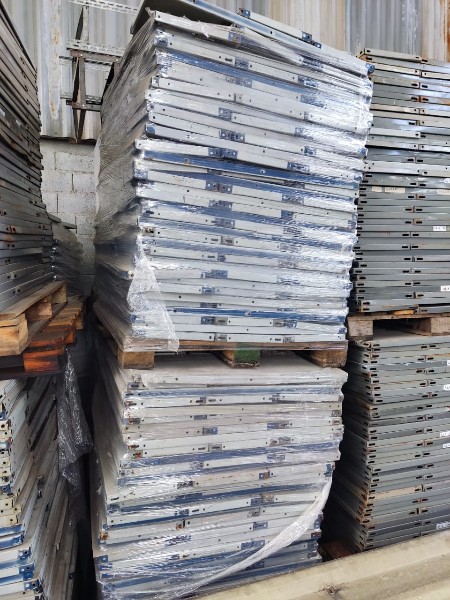 PRATELEIRAS DE AÇO (CONJUNTO COM 8 BANDEJAS DE 30X90CM E ALTURA DE 180 A 220CM DESMONTADOS); APROX. 700KG (PREÇO POR KG)