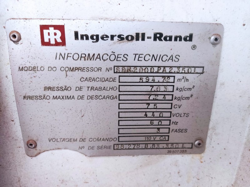 COMPRESSOR PARAFUSO INGERSOLL-RAND 75HP
