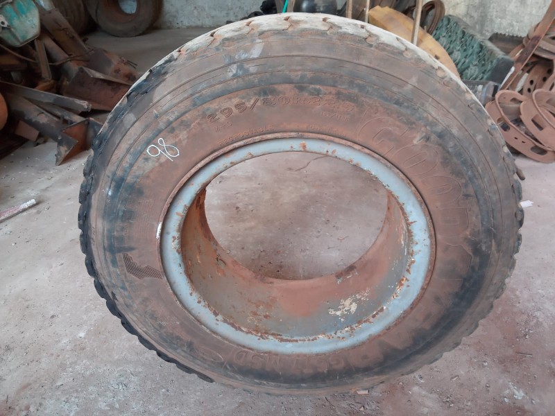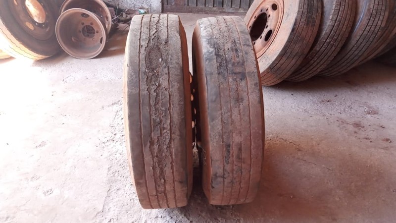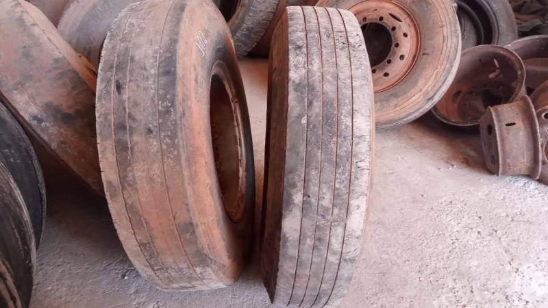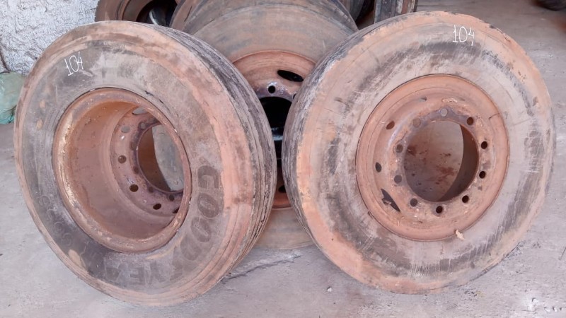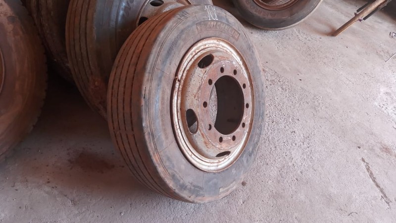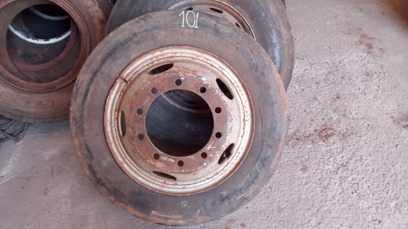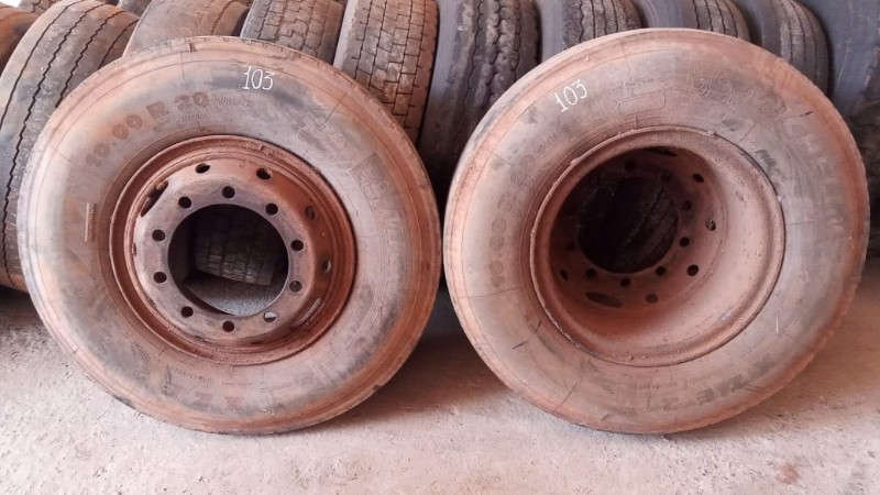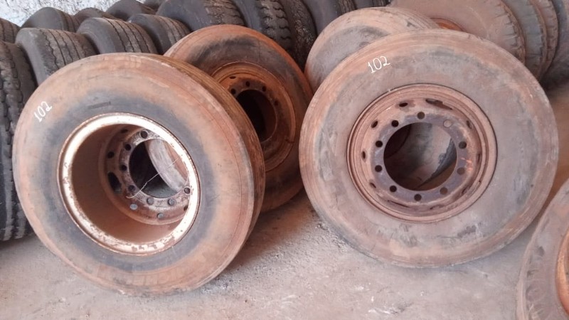 SERÁ VENDIDO NO ESTADO EM QUE SE ENCONTRA - RETIRADA/CARREGAMENTO POR CONTA DO COMPRADOR - VERIFIQUE CONDIÇÕES DE RETIRADA - NÃO SERÁ ACEITA RECLAMAÇÕES POSTERIORES 1 pneu Dunlop 11.00R22 com roda protetor e câmera de ar, mais ou menos de 30 a 40% de borracha 1 pneu Bridgestone 11.00R22 com roda protetor e câmera de ar, mais ou menos 30 % de borracha 1 pneu Firestone 11.00-22 com roda protetor e câmera de ar, mais ou menos 50% de borracha 1 pneu Goodyear 295/80R22.5 com roda protetor e câmera de ar, mais ou menos 50% de borracha 1 pneu Goodyear 11.00-22 com roda protetor e câmera de ar, mais ou menos 50% de borracha 2 pneus Pirelli CT 65 11.00-22 comum, com roda protetor e câmera de ar, mais ou menos 20 a 30% de borracha, sem resola. 1 pneu Michelin 275/70 R 22.5 com roda 10 parafusos, com protetor e câmera de ar, usado 1 pneu Pirelli 10.00 R 20, com roda, protetor e câmera de ar 1 pneu Goodyear 11.00R20, com roda, protetor e câmera de ar 4 pneus Michelin 10.00 R 20, com roda, protetor e câmera de ar