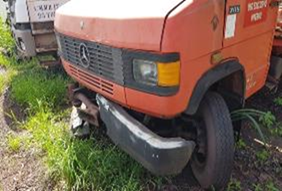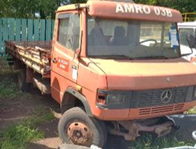 Carregamento e transporte fica sob responsabilidade do cliente, será necessário guincho para retirada do equipamento. Caminhão carroceria, modelo MB709, equipamento não está funcionando, não possui chave, não possui desembaçador, extintor e retrovisores, a carroceria está com malhal quebrado, sistema de direção deficiente, sistema de freios deficiente e pneus com deficiencia. Apresenta corrosão. Necessita de manutenção em toda parte mecânica, elétrica e estrutural. Será vendido no estado de conservação em que se encontra.