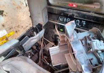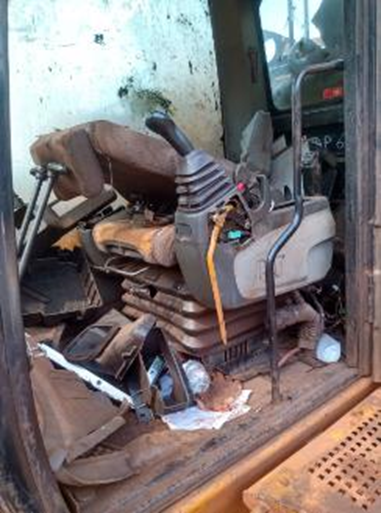 Na Cabine falta peças, vidros trincados, portas não fecham, bancos muito desgastados. Estrutura externa com defeito, tanque de combustivel muito ruim, plataforma amassada. Sistema eletrico faltando, bateria com defeito. Sistema de iluminação com defeito. Sistema hidraulico com defeito , falta cilindros e cilindros de elevação muito gastos. Sistemas de refrigeração com defeitos , radiador sem after cooler, mangueiras ressecas. Motor diesel está com defeito,Falta braço, lança e caçamba. Esteira está regular, Rodas motriz e guias apresenta marcas de uso. Chassi apresenta marcas de oxicorte e soldas. LOTE ÚNICO - SERÁ VENDIDO NO ESTADO EM QUE SE ENCONTRA.